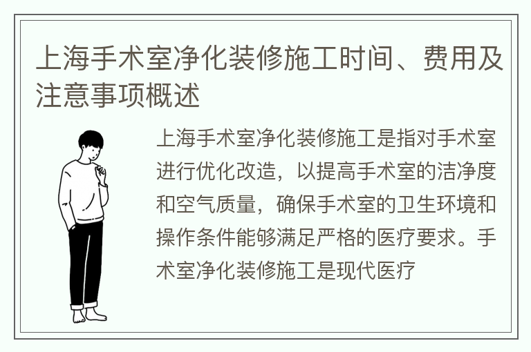 上海手术室净化装修施工时间、费用及注意事项概述