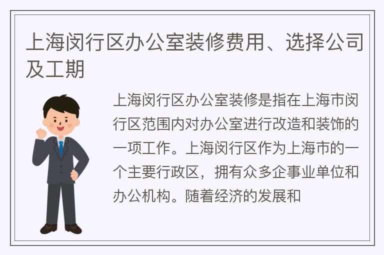 上海闵行区办公室装修费用、选择公司及工期