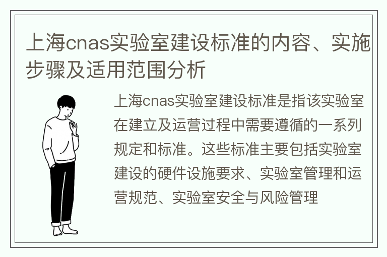 上海cnas实验室建设标准的内容、实施步骤及适用范围分析