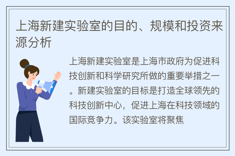 上海新建实验室的目的、规模和投资来源分析