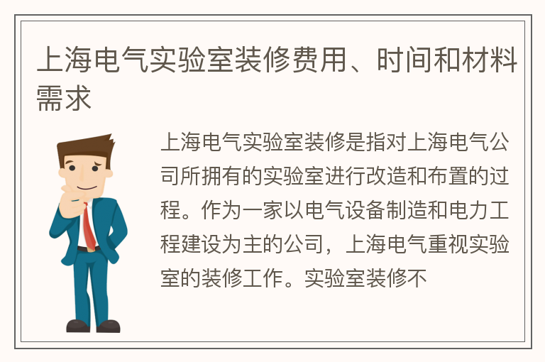 上海电气实验室装修费用、时间和材料需求