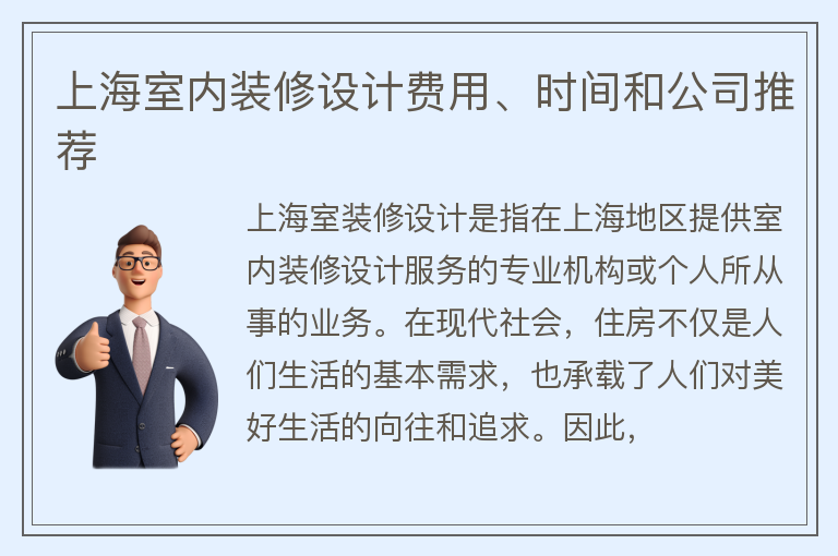 上海室内装修设计费用、时间和公司推荐