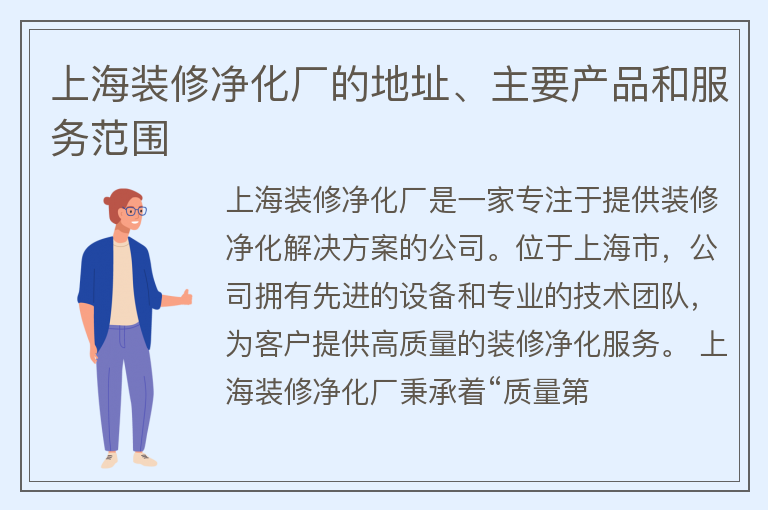 上海装修净化厂的地址、主要产品和服务范围
