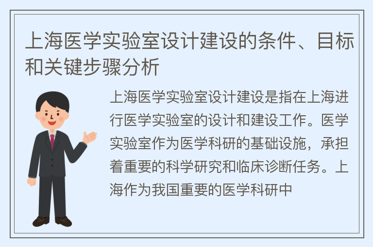 上海医学实验室设计建设的条件、目标和关键步骤分析