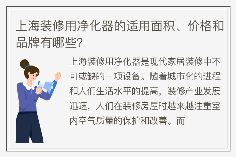 上海装修用净化器的适用面积、价格和品牌有哪些?