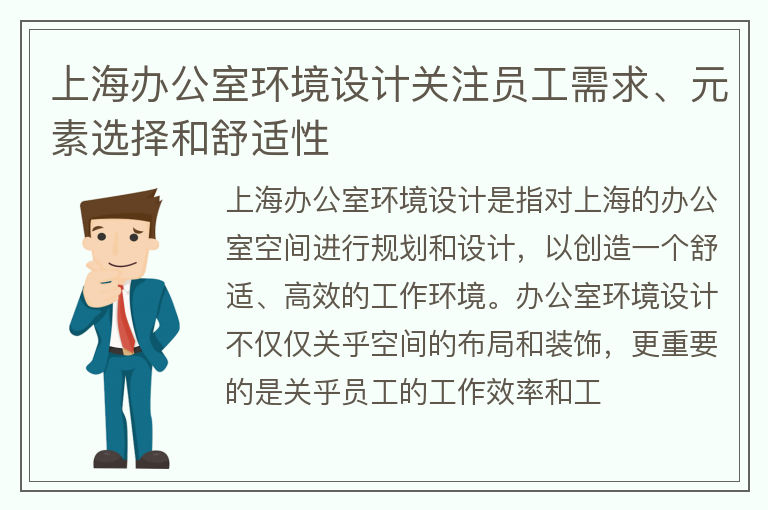上海办公室环境设计关注员工需求、元素选择和舒适性