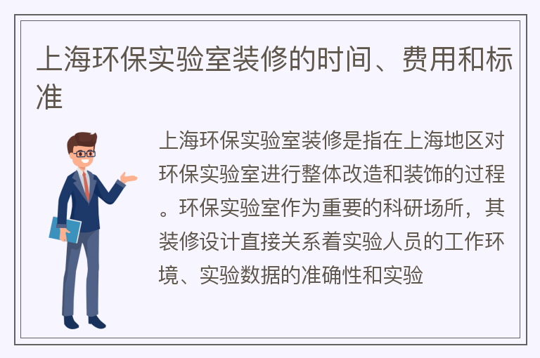上海环保实验室装修是指在上海地区对环保实验室进行整体改造和装饰的过程。环保实验室作为重要的科研场所,其装修设计直接关系着实验人员的工作环境、实验数据的准确性和实验......【点击详情】
