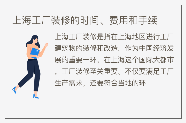 上海工厂装修是指在上海地区进行工厂建筑物的装修和改造。作为中国经济发展的重要一环,在上海这个国际大都市,工厂装修至关重要。不仅要满足工厂生产需求,还要符合当地的环......【点击详情】