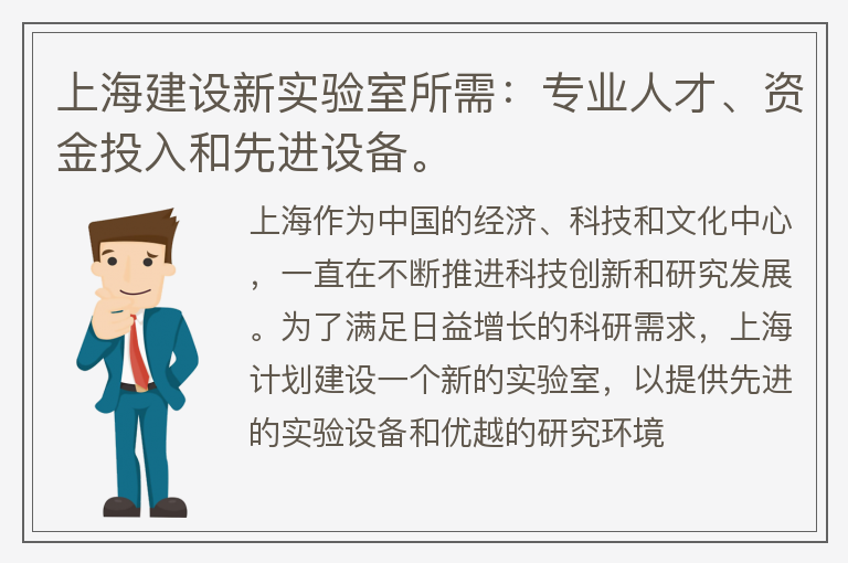 上海建设新实验室所需:专业人才、资金投入和先进设备。