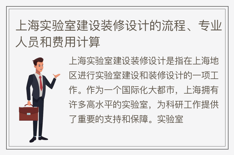 上海实验室建设装修设计的流程、专业人员和费用计算