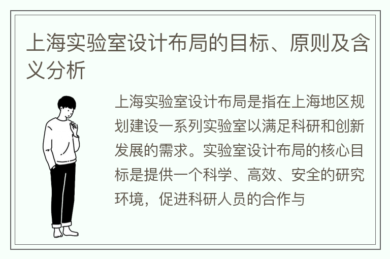 上海实验室设计布局是指在上海地区规划建设一系列实验室以满足科研和创新发展的需求。实验室设计布局的核心目标是提供一个科学、高效、安全的研究环境,促进科研人员的合作与......【点击详情】