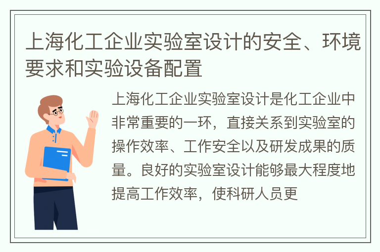 上海化工企业实验室设计的安全、环境要求和实验设备配置