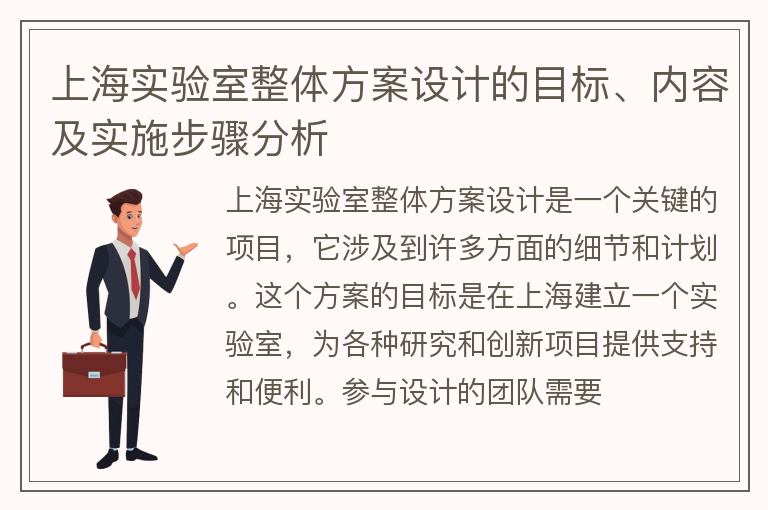 上海实验室整体方案设计是一个关键的项目,它涉及到许多方面的细节和计划。这个方案的目标是在上海建立一个实验室,为各种研究和创新项目提供支持和便利。参与设计的团队需要......【点击详情】