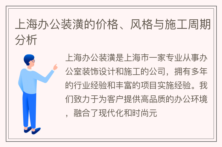 上海办公装潢的价格、风格与施工周期分析