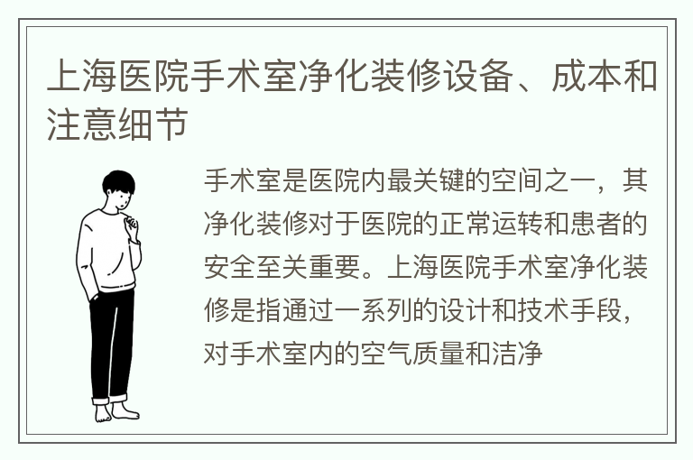 上海医院手术室净化装修设备、成本和注意细节