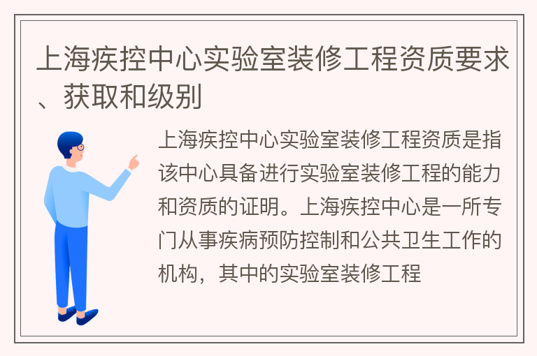 上海疾控中心实验室装修工程资质要求、获取和级别