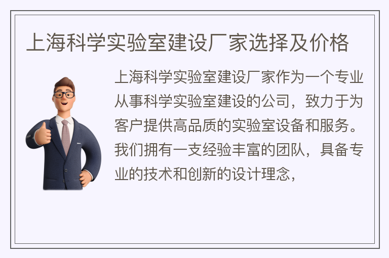上海科学实验室建设厂家选择及价格