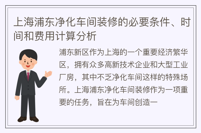 上海浦东净化车间装修的必要条件、时间和费用计算分析