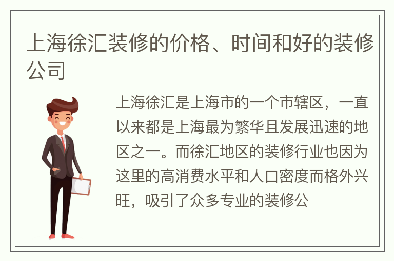 上海徐汇装修的价格、时间和好的装修公司