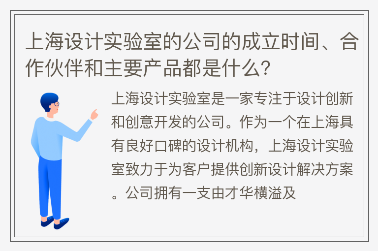 上海设计实验室的公司的成立时间、合作伙伴和主要产品都是什么?