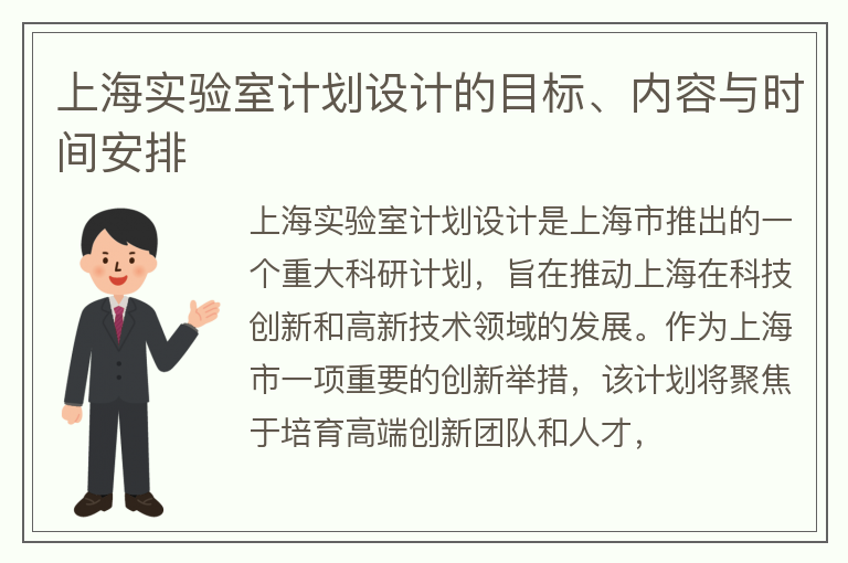 上海实验室计划设计是上海市推出的一个重大科研计划,旨在推动上海在科技创新和高新技术领域的发展。作为上海市一项重要的创新举措,该计划将聚焦于培育高端创新团队和人才,......【点击详情】