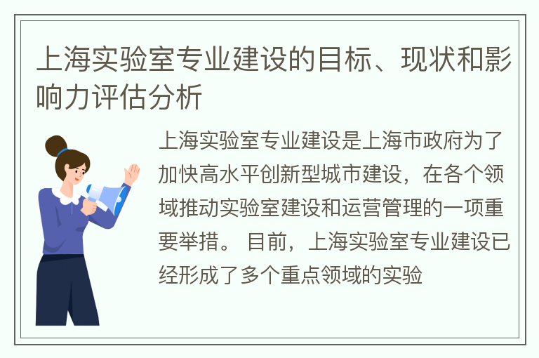 上海实验室专业建设是上海市政府为了加快高水平创新型城市建设,在各个领域推动实验室建设和运营管理的一项重要举措。 目前,上海实验室专业建设已经形成了多个重点领域的实验......【点击详情】