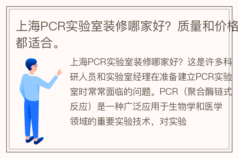 上海PCR实验室装修哪家好?质量和价格都适合。