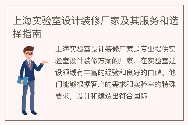 上海实验室设计装修厂家及其服务和选择指南