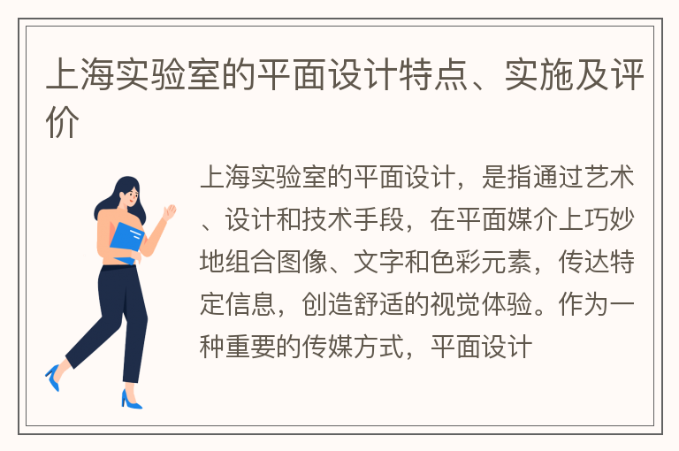 上海实验室的平面设计,是指通过艺术、设计和技术手段,在平面媒介上巧妙地组合图像、文字和色彩元素,传达特定信息,创造舒适的视觉体验。作为一种重要的传媒方式,平面设计......【点击详情】