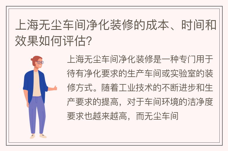 上海无尘车间净化装修的成本、时间和效果如何评估?