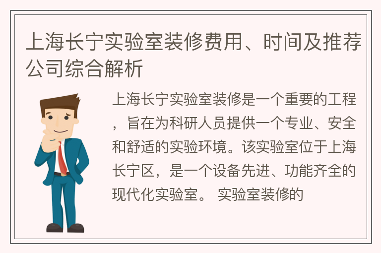 上海长宁实验室装修费用、时间及推荐公司综合解析