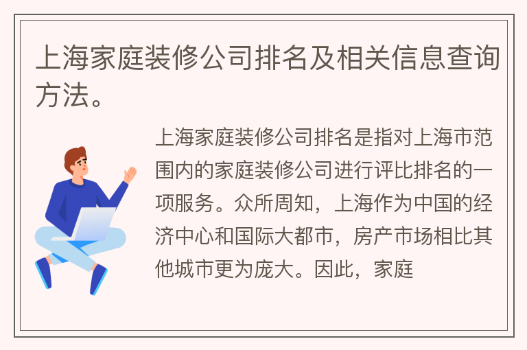 上海家庭装修公司排名及相关信息查询方法。
