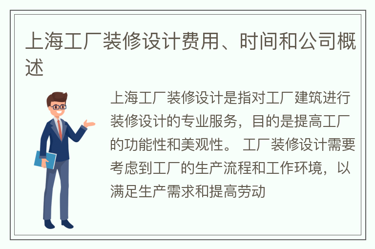 上海工厂装修设计费用、时间和公司概述