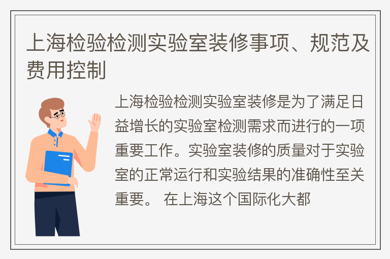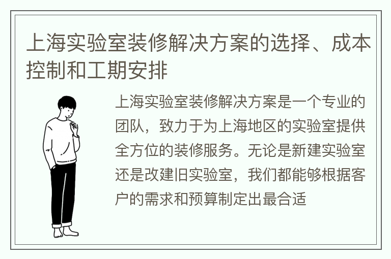 上海实验室装修解决方案的选择、成本控制和工期安排