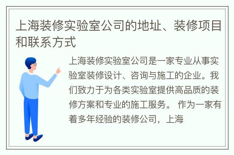上海实验室整体建设公司的业务、项目经验和服务范围介绍