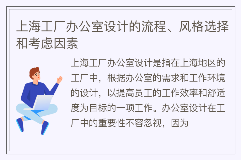 上海工厂办公室设计的流程、风格选择和考虑因素