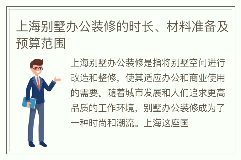 上海别墅办公装修是指将别墅空间进行改造和整修,使其适应办公和商业使用的需要。随着城市发展和人们追求更高品质的工作环境,别墅办公装修成为了一种时尚和潮流。上海这座国......【点击详情】