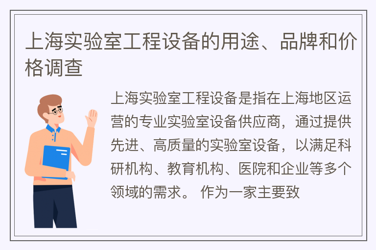 上海实验室工程设备是指在上海地区运营的专业实验室设备供应商,通过提供先进、高质量的实验室设备,以满足科研机构、教育机构、医院和企业等多个领域的需求。 作为一家主要致......【点击详情】