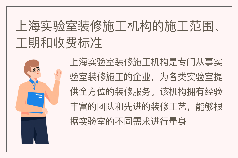上海实验室装修施工机构的施工范围、工期和收费标准