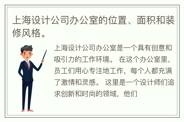 上海设计公司办公室的位置、面积和装修风格。