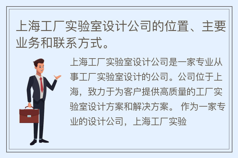 上海工厂实验室设计公司的位置、主要业务和联系方式。