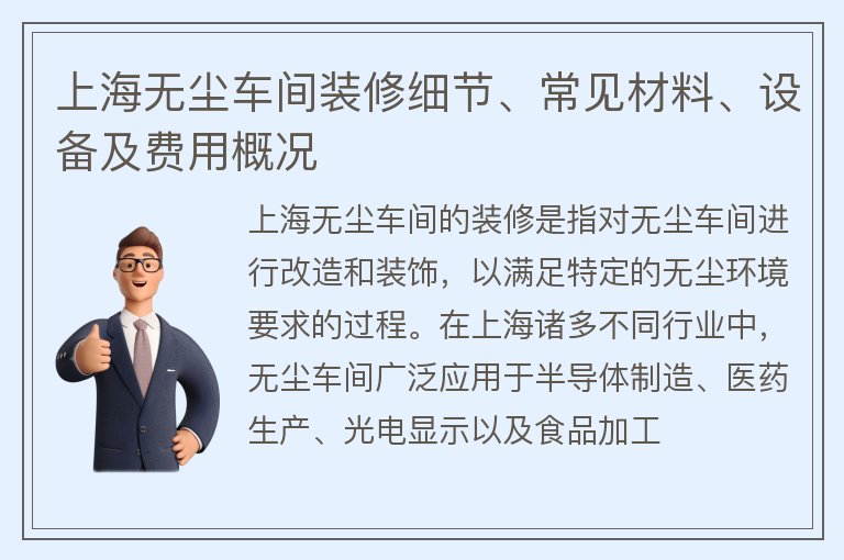 上海无尘车间装修细节、常见材料、设备及费用概况