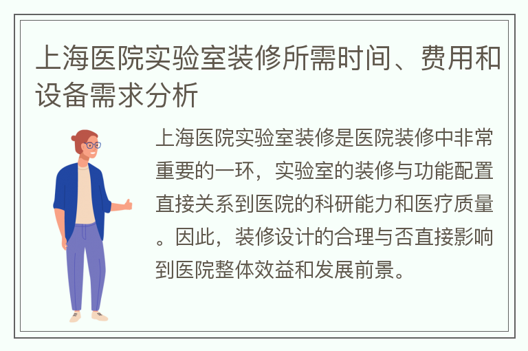 上海医院实验室装修是医院装修中非常重要的一环,实验室的装修与功能配置直接关系到医院的科研能力和医疗质量。因此,装修设计的合理与否直接影响到医院整体效益和发展前景。......【点击详情】