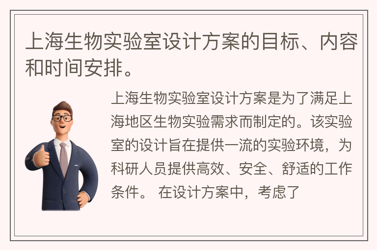 上海生物实验室设计方案是为了满足上海地区生物实验需求而制定的。该实验室的设计旨在提供一流的实验环境,为科研人员提供高效、安全、舒适的工作条件。 在设计方案中,考虑了......【点击详情】