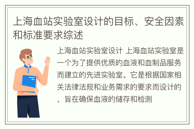 上海血站实验室设计的目标、安全因素和标准要求综述