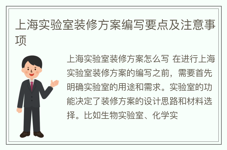 上海实验室装修方案编写要点及注意事项