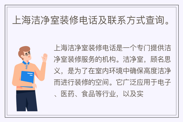 上海洁净室装修电话及联系方式查询。