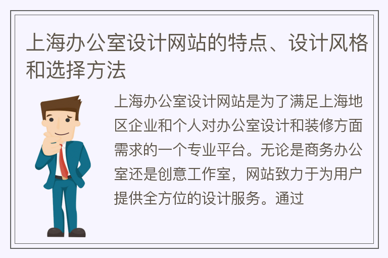 上海办公室设计网站是为了满足上海地区企业和个人对办公室设计和装修方面需求的一个专业平台。无论是商务办公室还是创意工作室,网站致力于为用户提供全方位的设计服务。通过......【点击详情】