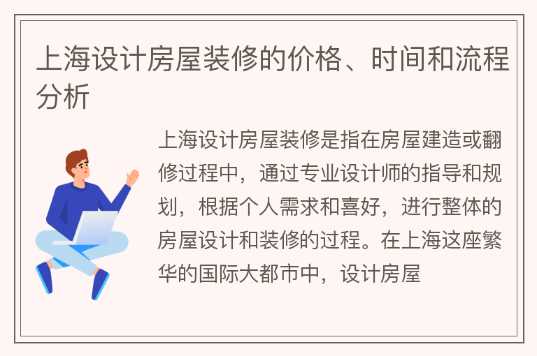 上海设计房屋装修是指在房屋建造或翻修过程中,通过专业设计师的指导和规划,根据个人需求和喜好,进行整体的房屋设计和装修的过程。在上海这座繁华的国际大都市中,设计房屋......【点击详情】