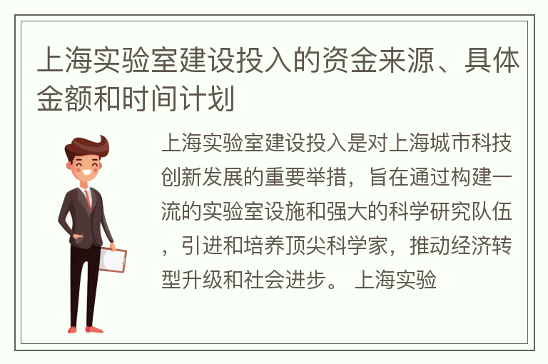 上海实验室建设投入的资金来源、具体金额和时间计划